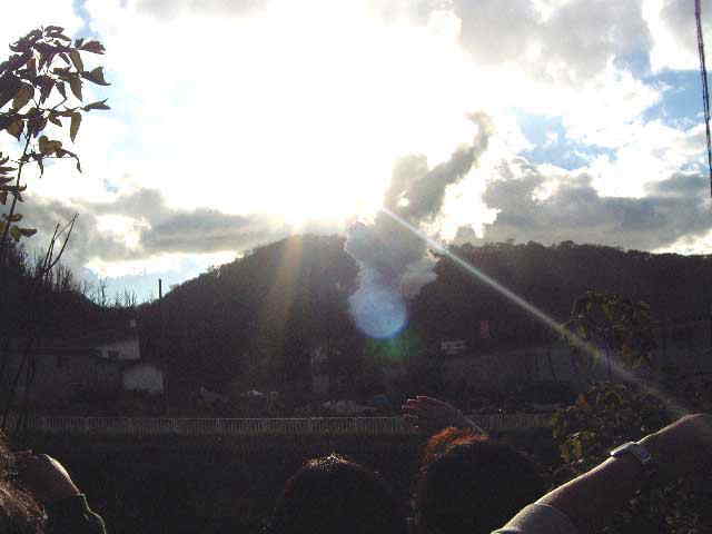 洞爺湖温泉は営業している旅館もあり、観光客も歩いていて、いったいどこが噴火したの?と思ったほど。 しばらくすると、突然通行止めのフェンスがあり、その向こうは人のいなくなったホテルなどの前に火山灰が高く積み上げられ、まるで廃墟のようです。 向こうに見える噴煙は、小さく見えるけど実際にはドドーンという地響きと共にたくさんの石を吹き上げています。 その恐ろしさと、湖で遊ぶ人たちのようすが対照的でした。