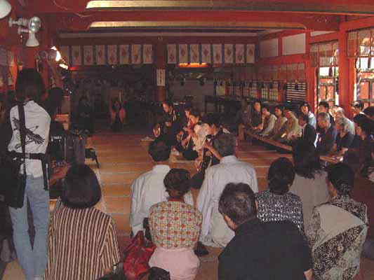 拝殿の中での奉納演奏はとっくに始まっていました。ちょっとわかりにくいけど、中央の白っぽい服が西潟昭子さん。